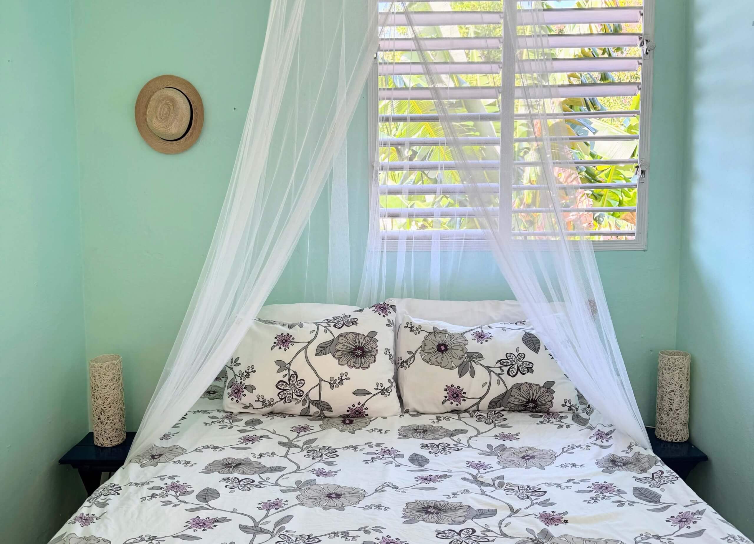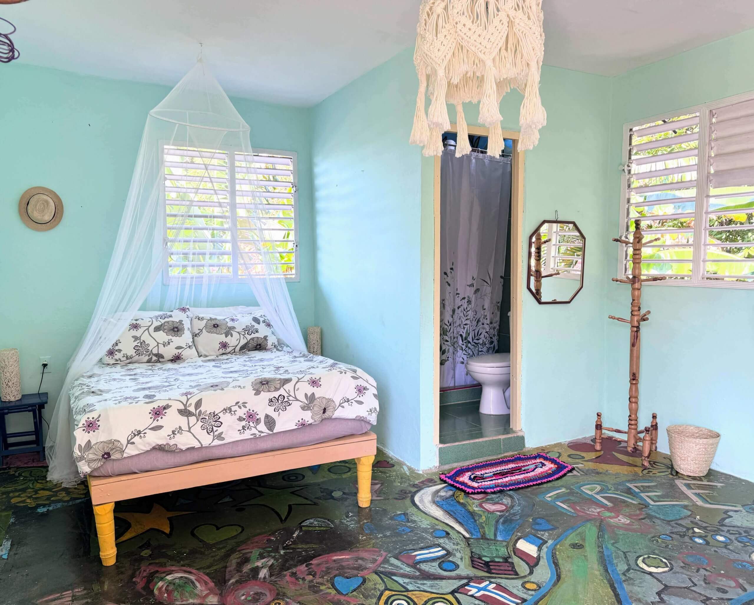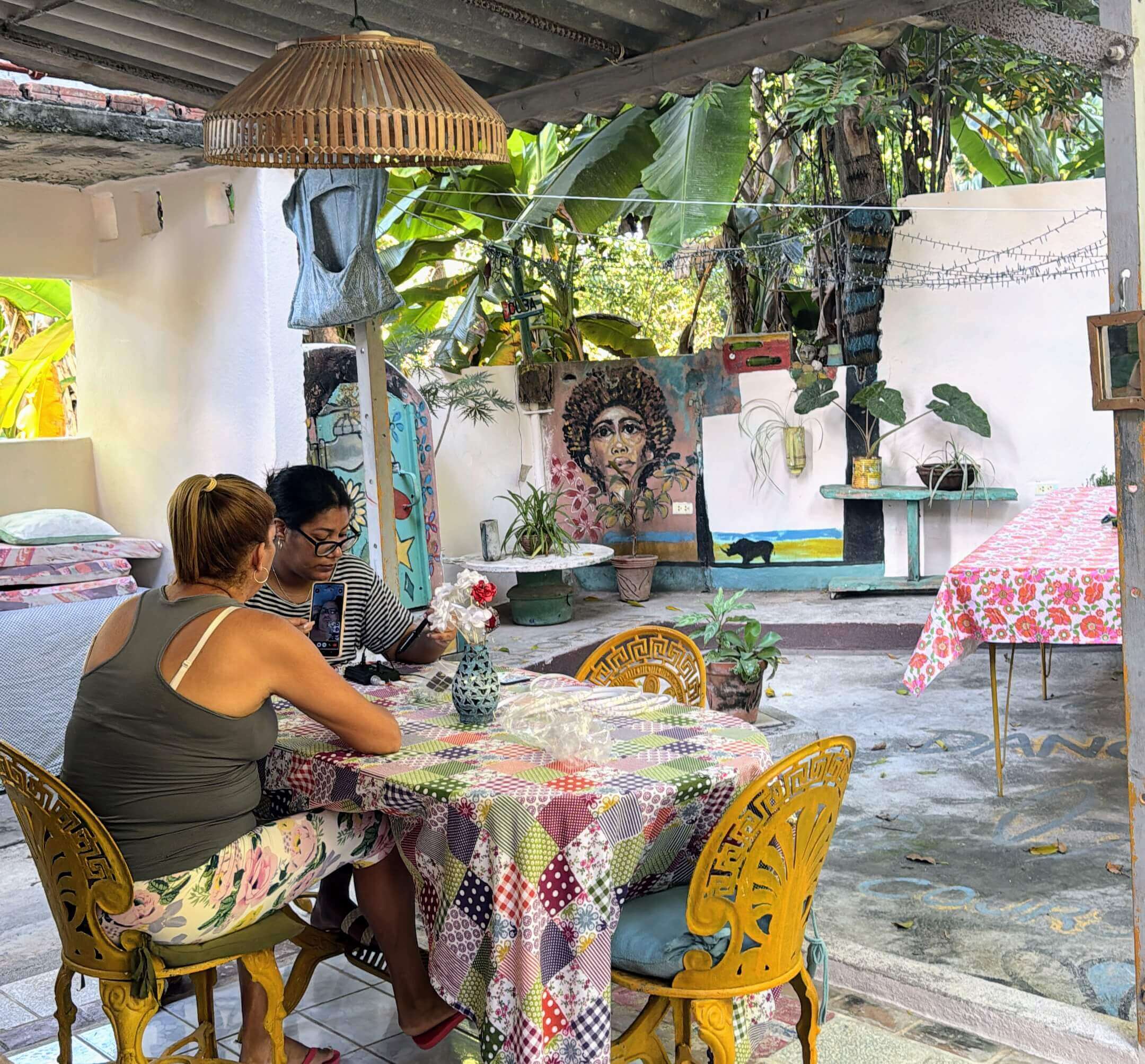 Rommet har direkte tilgang til stuen og vår koselige bakgård hvor du finner bananplanter og avocado-trær. Her arrangerer vi middager og frokoster, lærer bort salsa eller spiller domino.