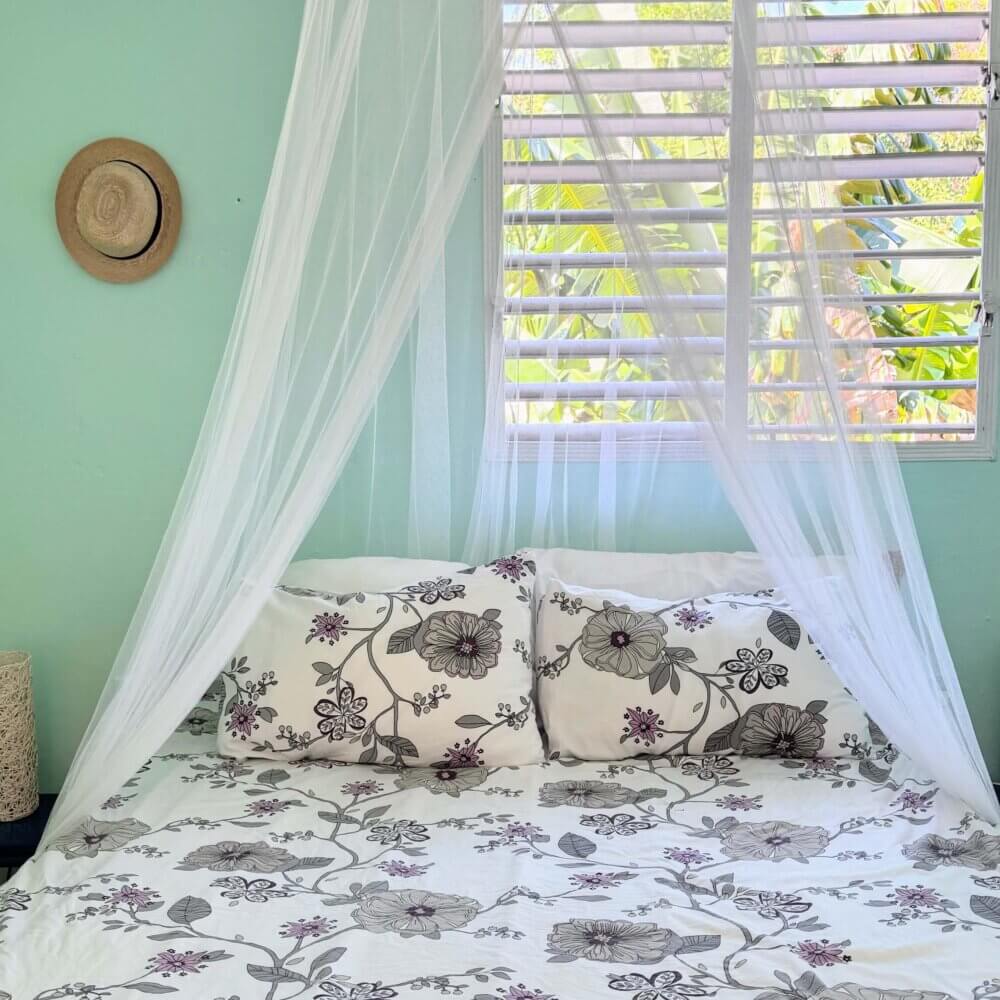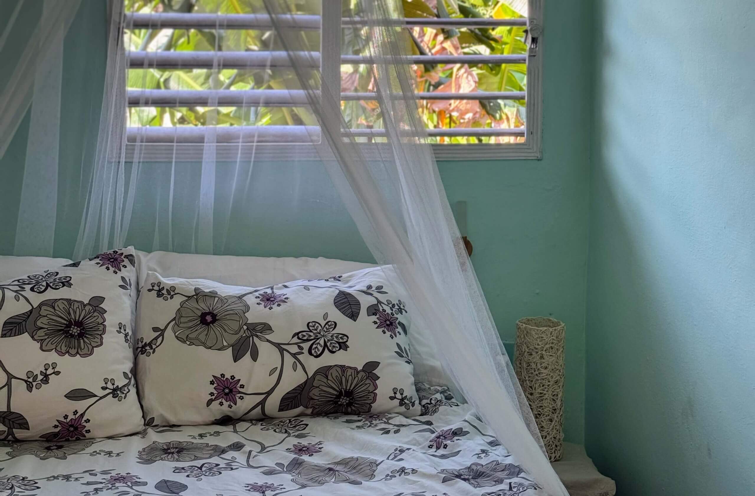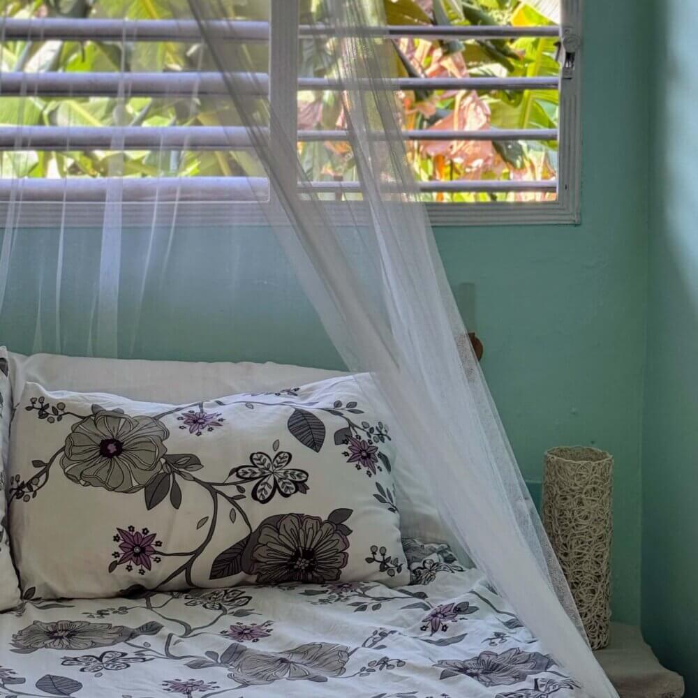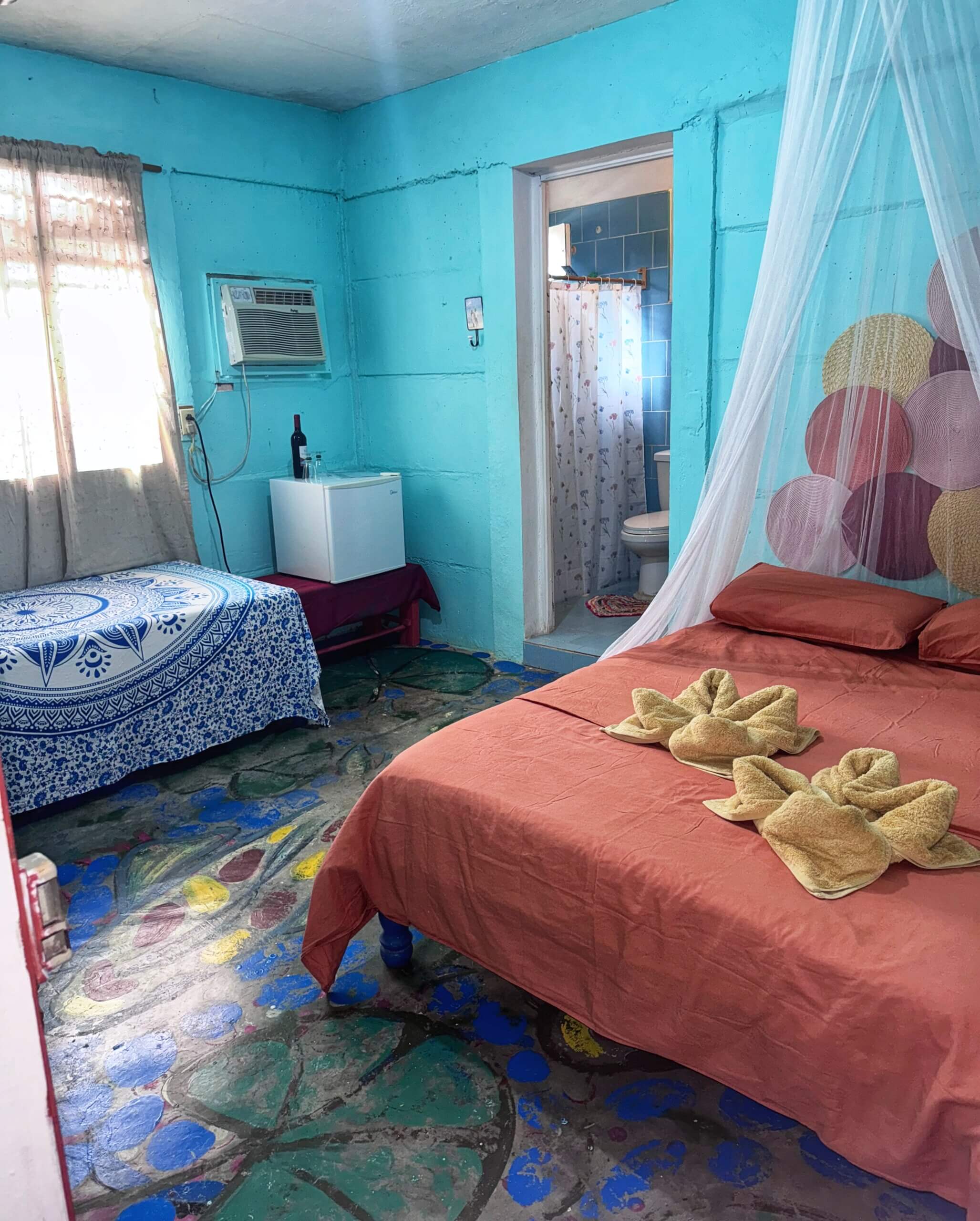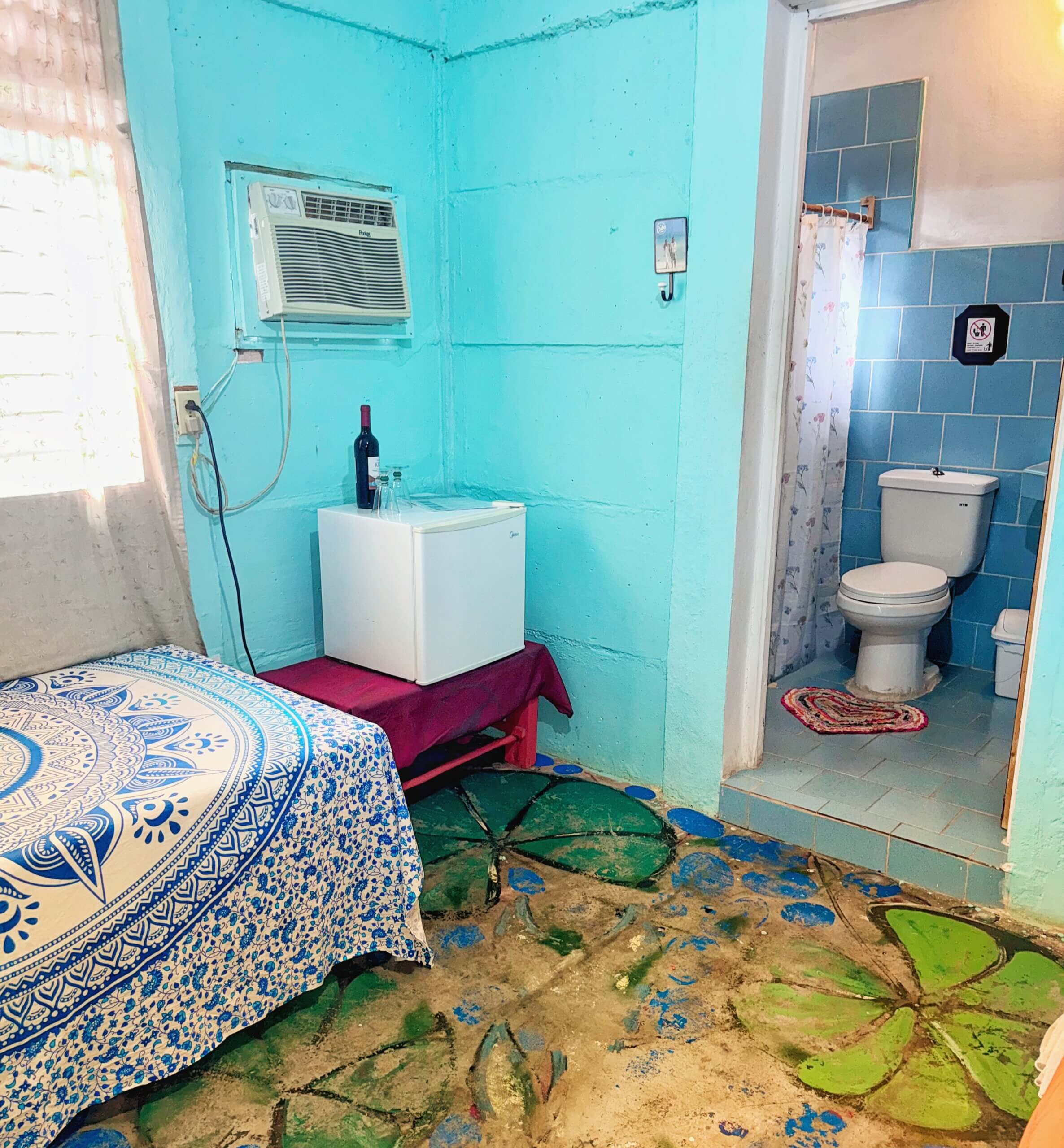 Rommet El Colibri er stort og luftig og har egen inngang fra gateplan. Rommet inneholder en dobbeltseng og en enkeltseng. Men det er også mulig å sette inn en ekstra enkeltseng ved behov. Værelset har flere vinduer, håndmalte gulv og turkise vegger. Her har du eget bad, aircondition, vifte og et lite kjøleskap.